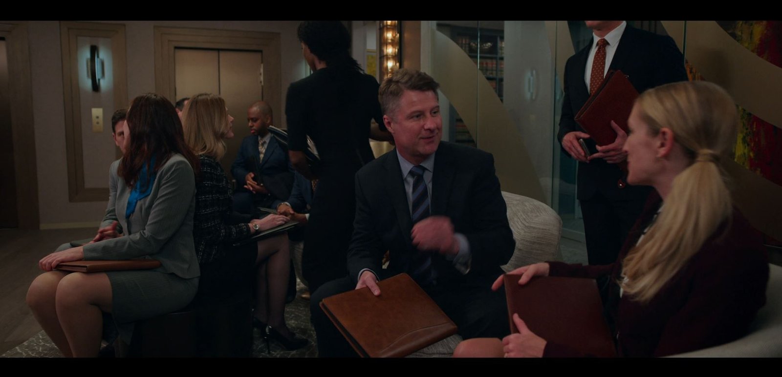 La transmisión de poderes entre administraciones en The Good Fight. Los agentes veteranos de Trump, entre ellos Kurt Vein, en la reunión con el director de la nueva administración de Trump.